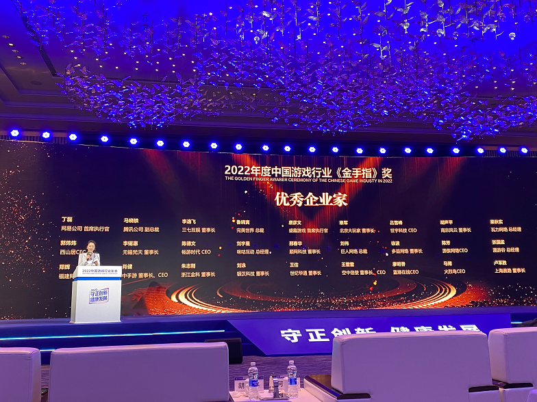 11月17日,由中国文化娱乐行业协会协同成都市人民政府共同主办的2022年度中国游戏行业年会在成都盛大召开。年会隆重揭晓了2022年度“金手指”奖项获奖名单,公司凭借强劲的综合实力一举斩获五项重量级大奖。其中,IM电竞董事长朱志刚先生与网易首席执行官、腾讯副总裁等多位知名企业家荣膺“2022年度中国游戏行业金手指优秀企业家”称号;因突出的研发实力与IP影响力,公司斩获“优秀企业”“游戏研发先进单位”双料大奖;公司自研创意养成精品《我的汤姆猫2》《我的安吉拉2》则凭借优秀的市场表现,双双获评 “2022年度中国游戏行业金手指优秀手机游戏”。